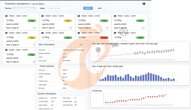 Data bulletin board on environmental control, feeding, water, electricity and feed distribution on and off the site provided to the group's frontline producers (field leaders/section leaders, etc.) and serial management personnel to improve frontline production efficiency.